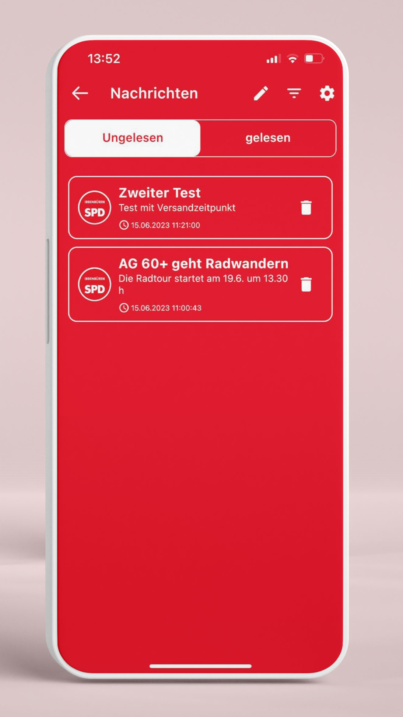 Endlich ist sie da - unsere eigene App! Viele von uns haben ihr Smartphone immer dabei. Was liegt daher näher, als dieses Medium zu nutzen, um über die SPD Ibbenbüren und generell politische Themen aus Ibbenbüren (und Umfeld) informiert zu werden? Installiert euch daher unsere SPD-App - und bleibt stets auf dem aktuellen Stand: jederzeit und überall. Je nach Berechtigung könnt ihr viele spannende Informationen erhalten. In sicheren Chaträumen können sich unsere Arbeitsgruppen austauschen.