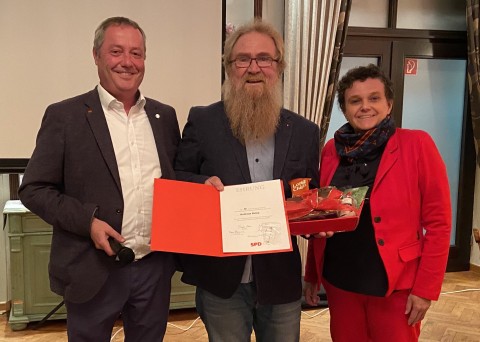 40 Jahre in der Partei und jetzt auch wieder mit im Ortsvereinsvorstand: Ralf Stieneker und Susanne Spilker-Gottwald freuen sich über die Verstärkung durch Andreas Rolke!